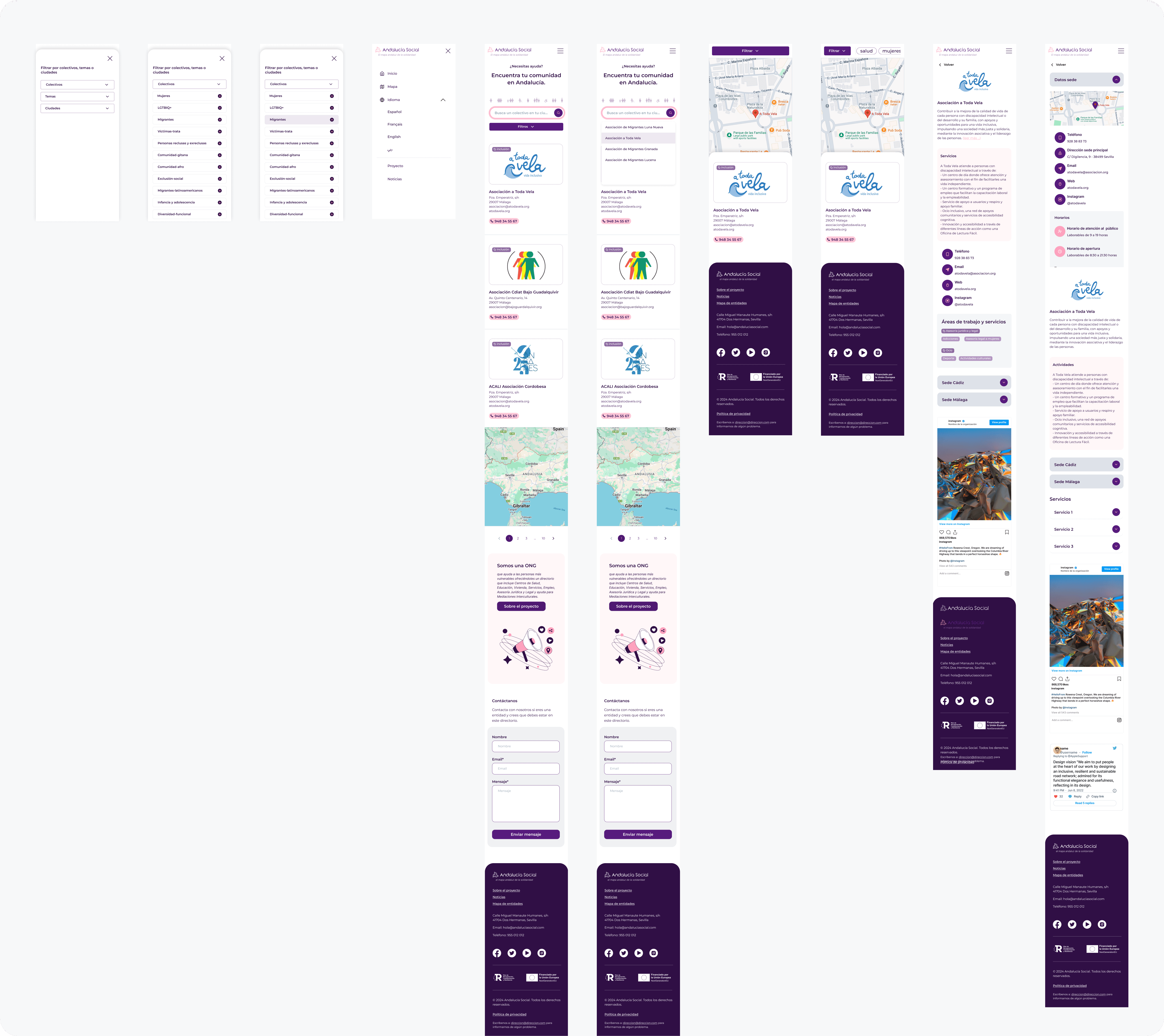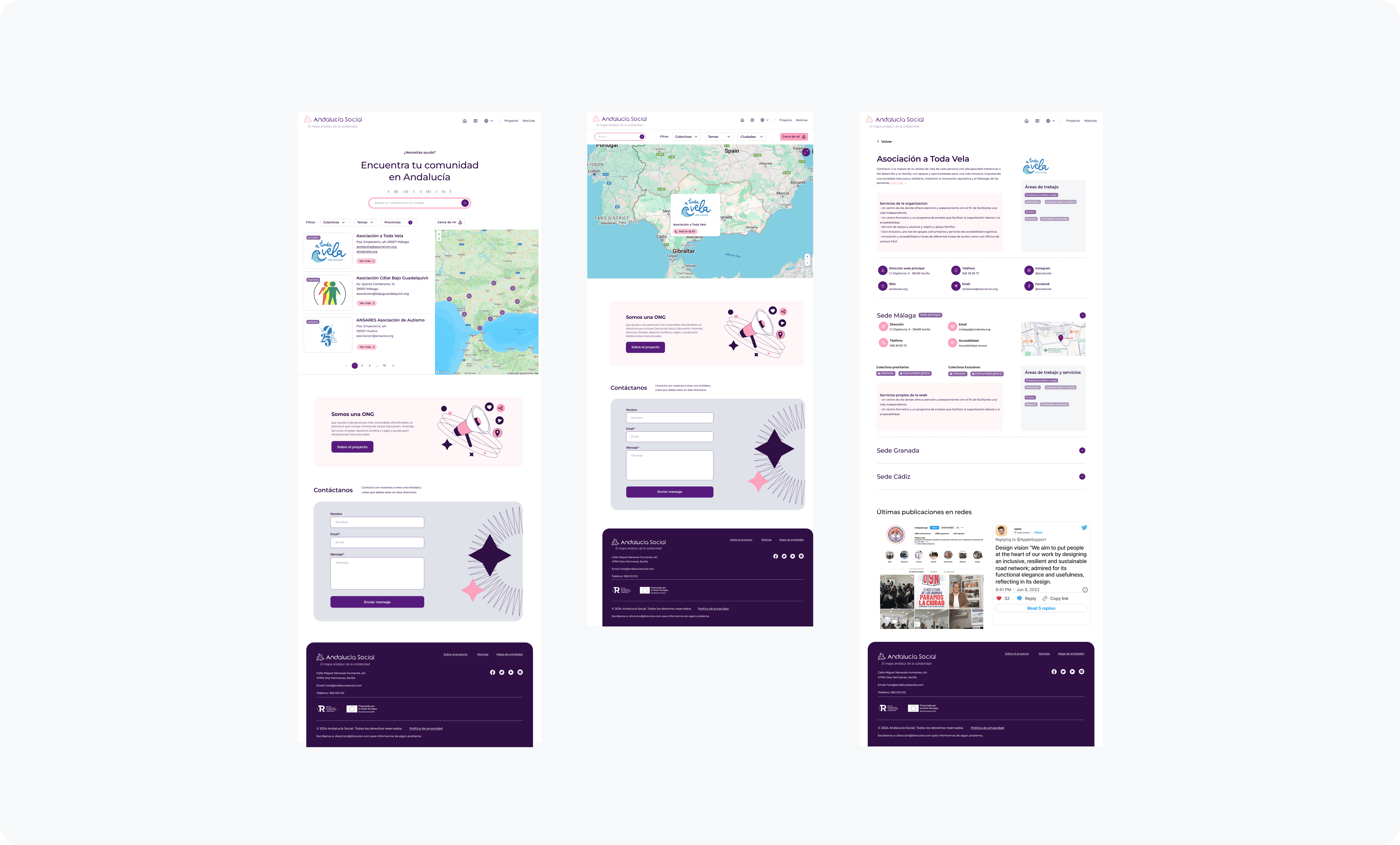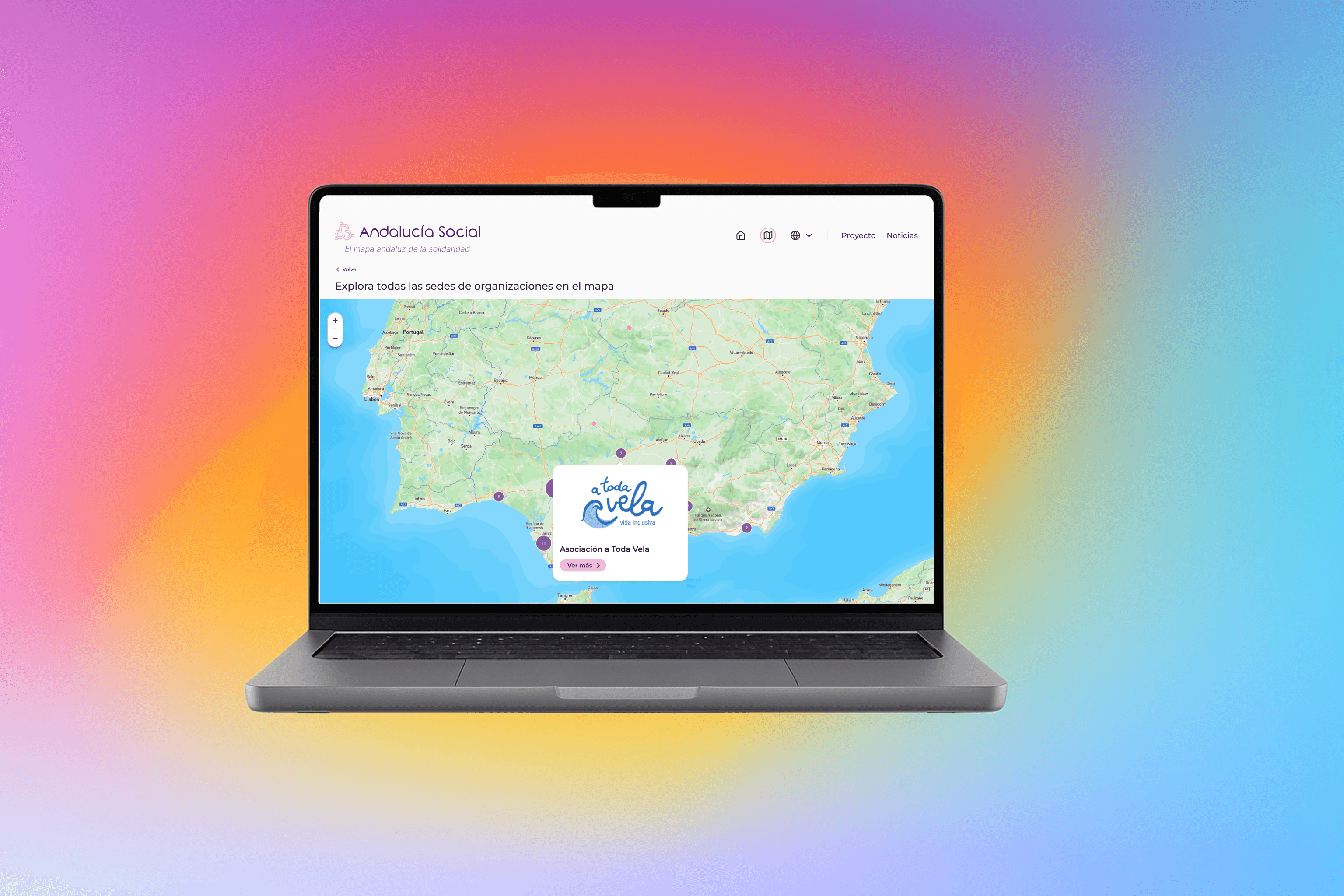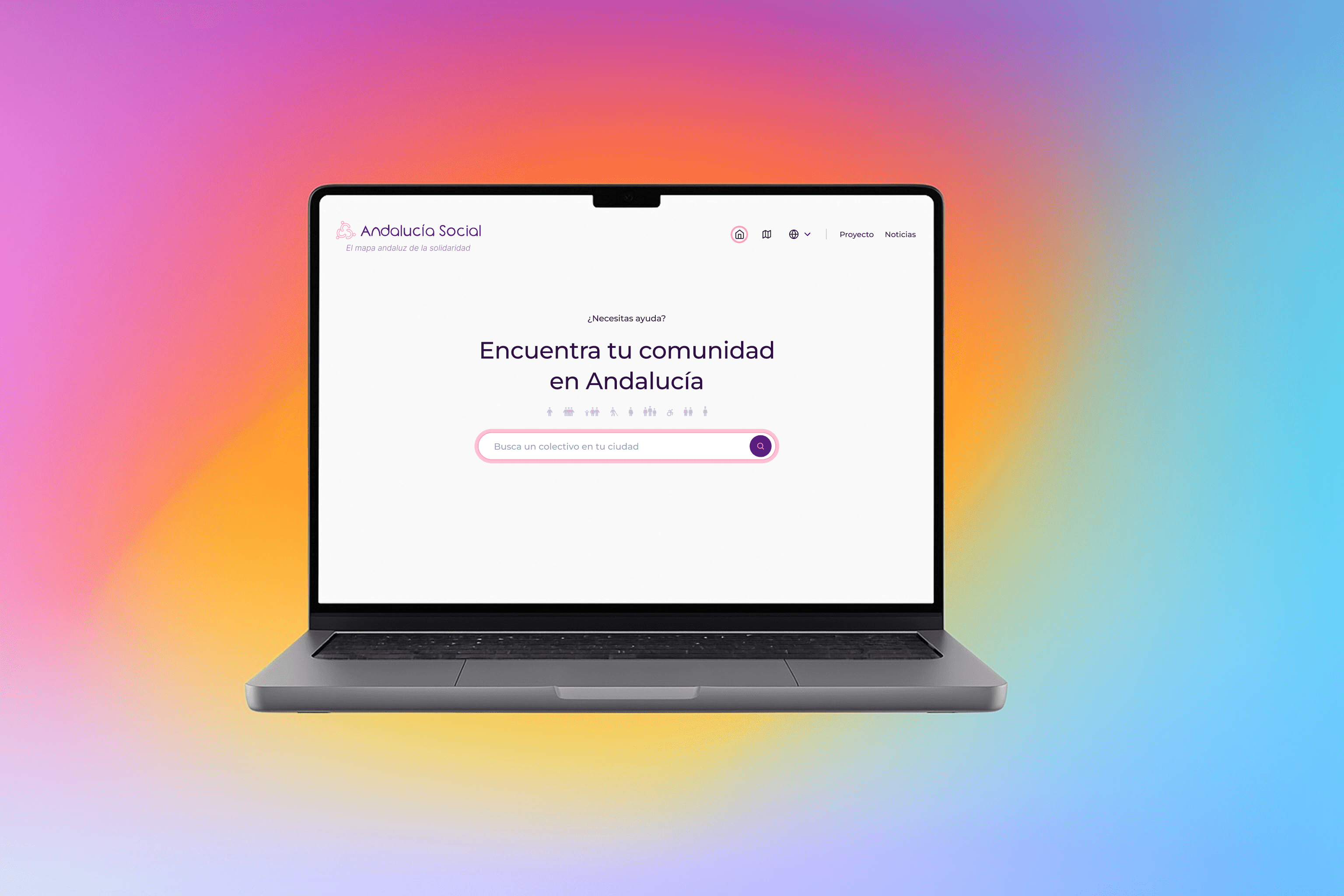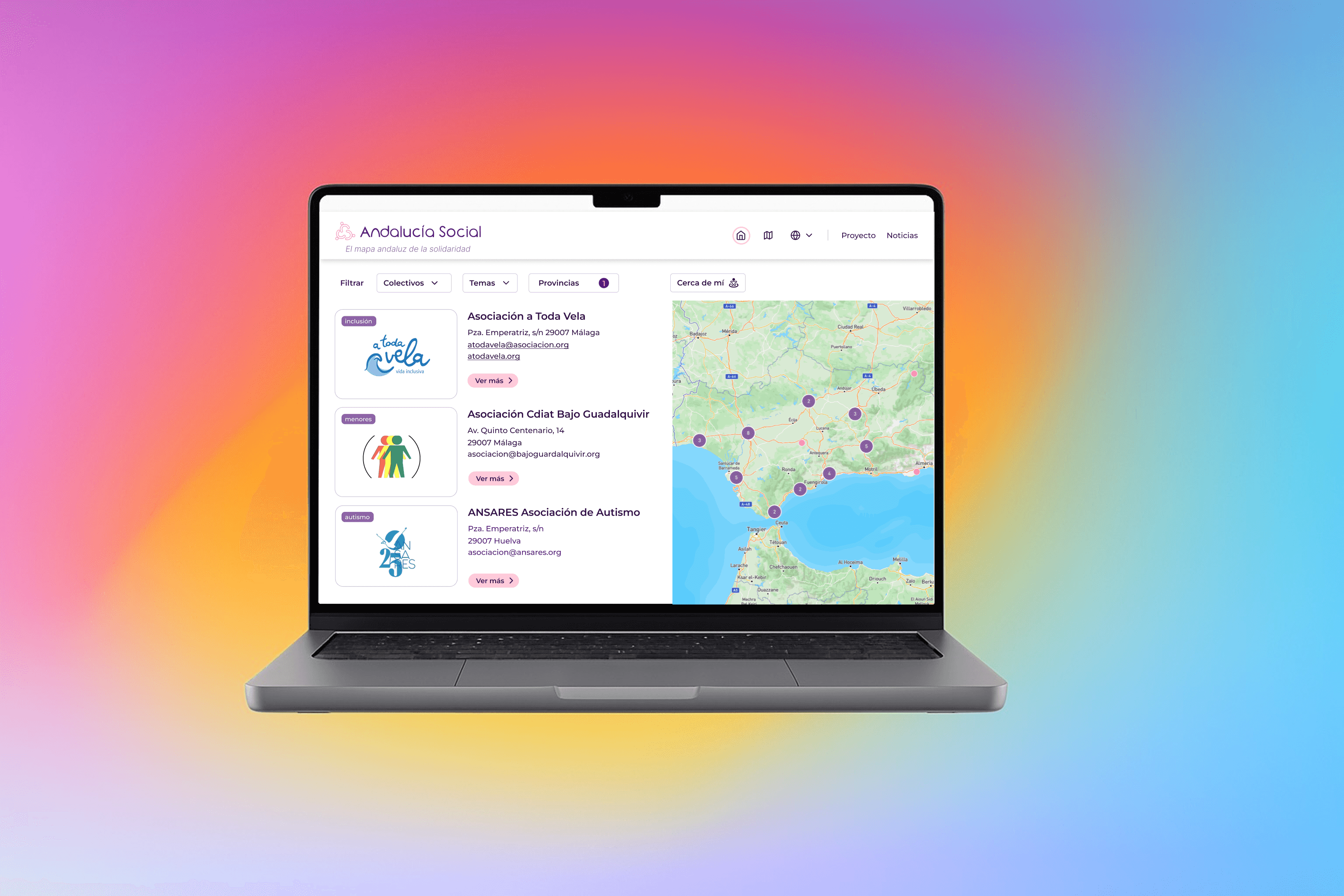 La app Andalucía Social permite geolocalizar servicios, recursos y organizaciones que apoyan a colectivos vulnerables en Andalucía. El proyecto se centró en crear una experiencia clara, accesible y multilingüe que facilitara la integración social y la navegación por un mapa vivo de recursos comunitarios.